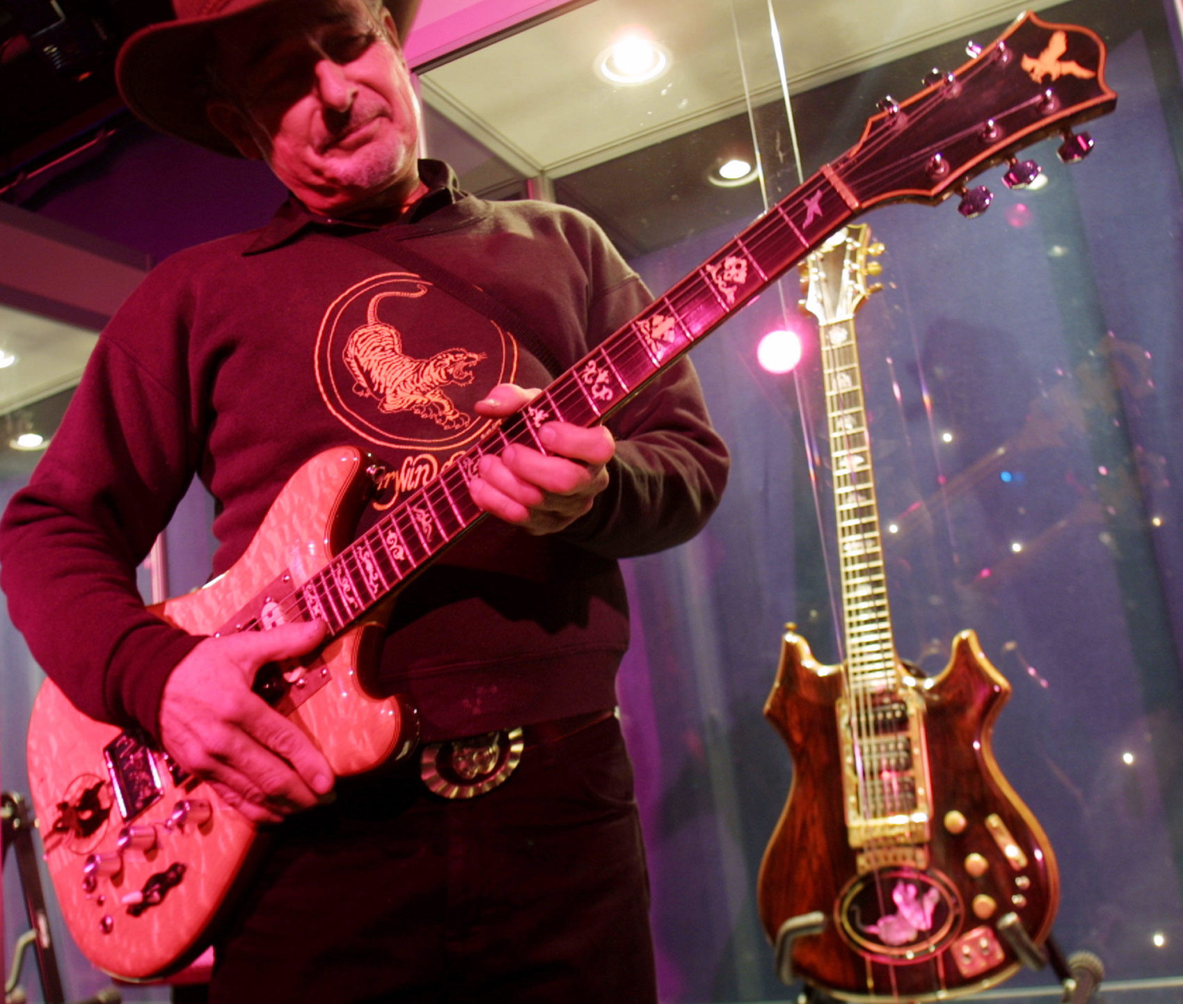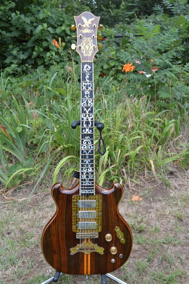 Some of the other rare, custom hand-made guitars include the Dollar Sign Guitar custom-built in 1974 by Doug Irwin for Bob O’Conner, lead guitarist for the 27 Dollar Snap on Face, a 1970s West Coast Rock band. A bass guitar made for Phil Lesh of the Grateful Dead in the 1970s, and many others that we will be featuring on this site as soon as we can get some decent photographs. Much of the history and photos of these historic one of a kind guitars were lost in a fire at The Art Farm.